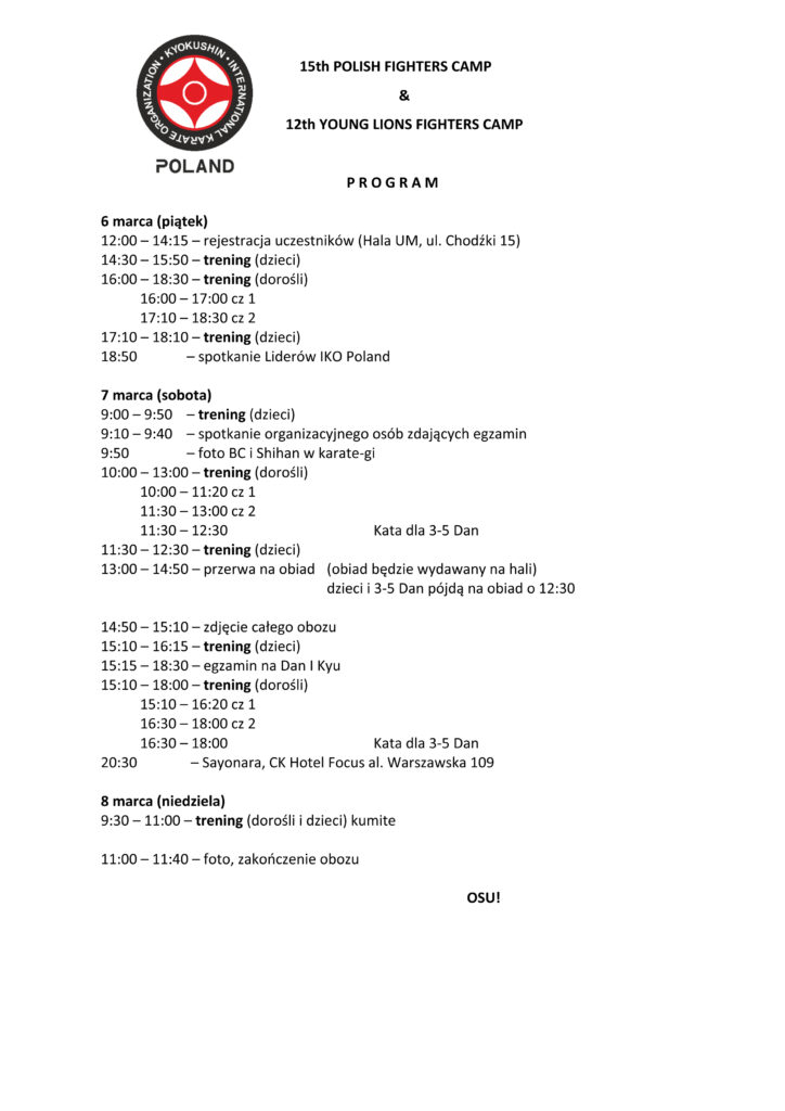 15th Polish Fighters Camp oraz 12th Young Lions Camp, 06-08.03.2026, Lublin
