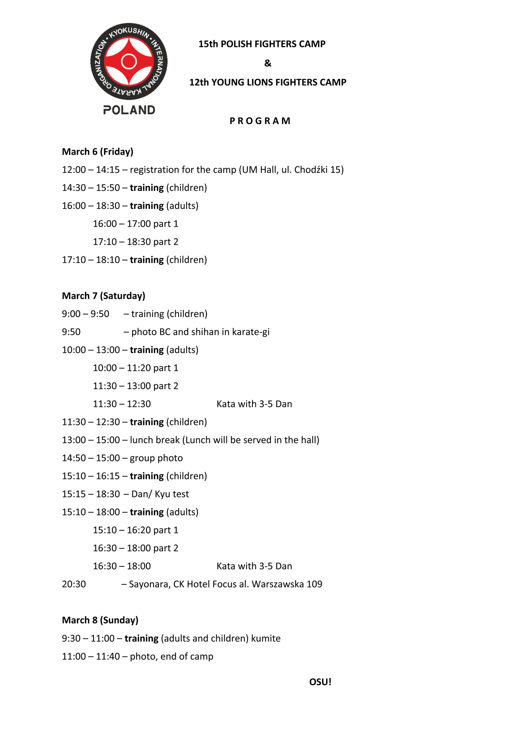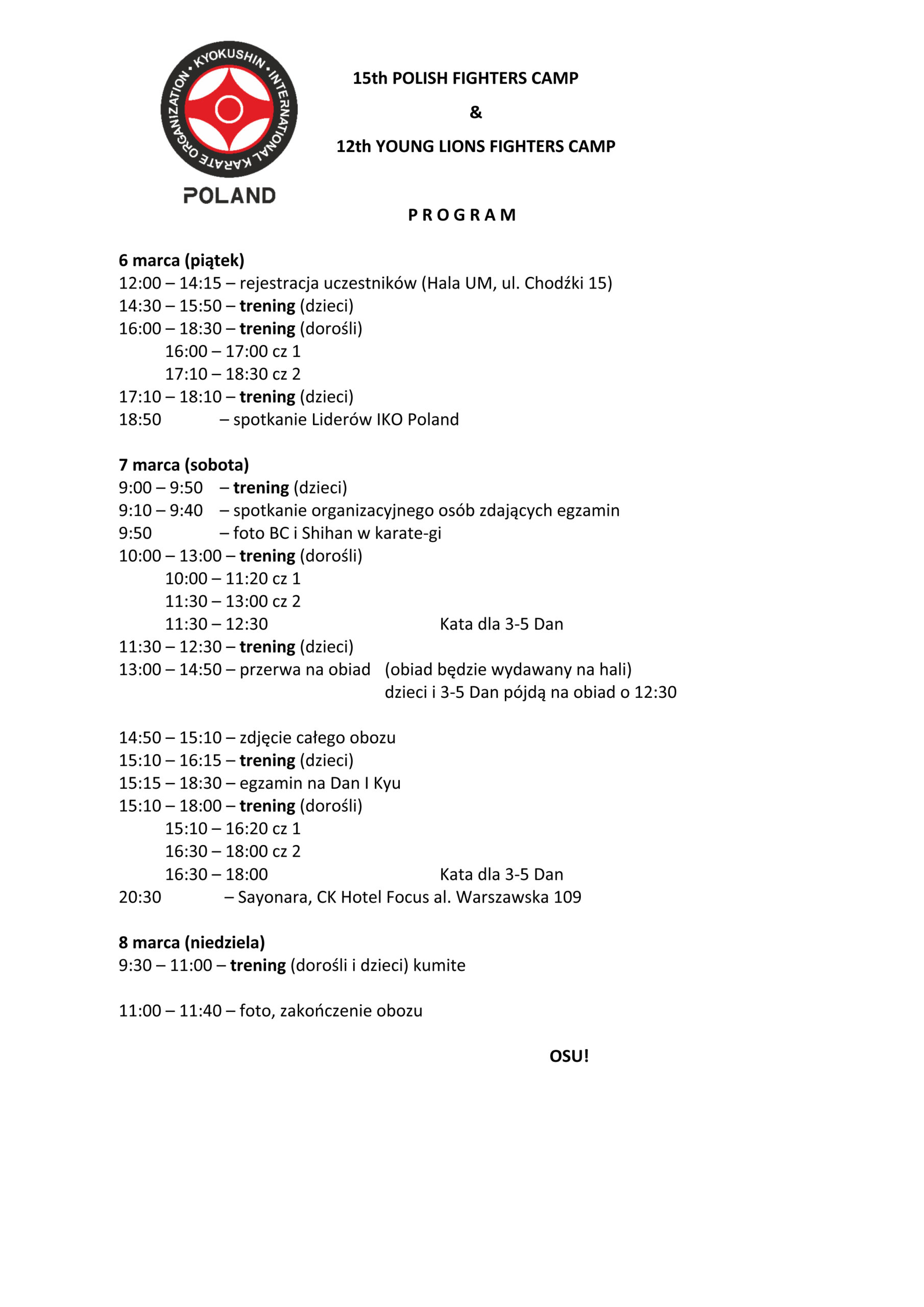 15th Polish Fighters Camp oraz 12th Young Lions Camp, 06-08.03.2026, Lublin