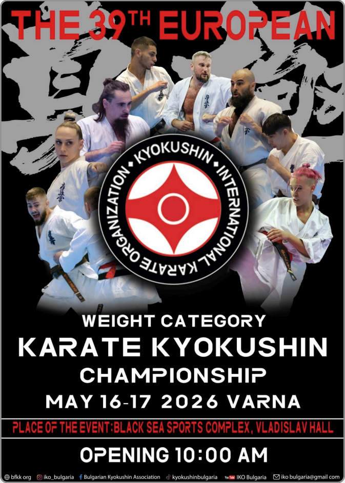 The 39th European Weight Category Karate Kyokushin Championships, 16-17.05.2026, Varna, Bulgaria